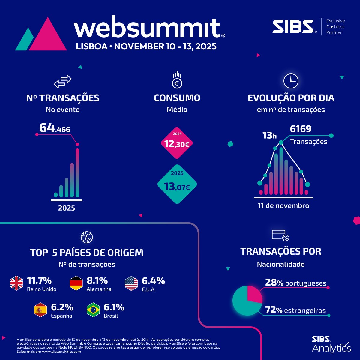 Transações de cartões estrangeiros crescem 10,2% no período da Web Summit e restauração lidera gastos (+43%)